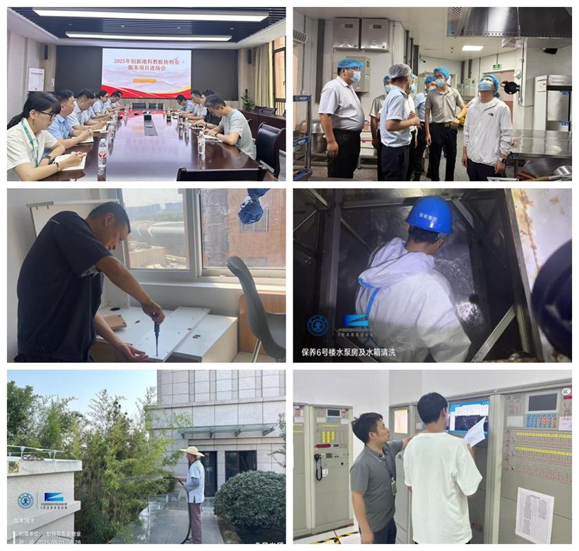 创新港综合管理服务中心统筹安排,做好暑假工作安排。中心全体人员延迟放假一周,做好暑假各项工作筹备,组织新的物业服务单位进场会,召开食堂食品安全月调度会,围绕假期餐饮服务保障、暑期施工改造、食材安全把控、人员安全管理、档口引进退出等重点工作进行部署。开展安全隐患排查,对物业、能源、餐饮、商业服务开展了全面的隐患排查,针对发现问题,组织和要求各外包单位整改;集中约谈食堂新入围供货商,确保新入围的供货商尽快熟悉食材配送流程。继续做好各项服务保障工作,物业、能源、商业、食堂均正常提供服务,同时根据实际情况,做好局部、特定时间段服务暂停,以便开展维修、保养、改造、培训等工作;利用假期勘查了创新港部分巨构现场,筹备咖啡站招商事宜。开展设施设备维修维护和环境改造,全面检查教室公共设施及多媒体设备;摸排实验室用电设备及接电走线情况;排查供水管道、消火栓及排水系统,测试应急发电设备;检修配电房、电路、空调设备及各个功能性设备机房(站);对运动场球网全面换新;清洗5个学生食堂、2个移动售餐车的排油烟管道;组织商户对营业环境进行升级改造。做好校园绿化和保洁,全面清理校园垃圾,修剪草坪、绿植,保持环境整洁;着力清理卫生死角,重点对喷泉、游泳馆、顶部灯具、屋顶花园、水系、新生选宿房间进行保洁。