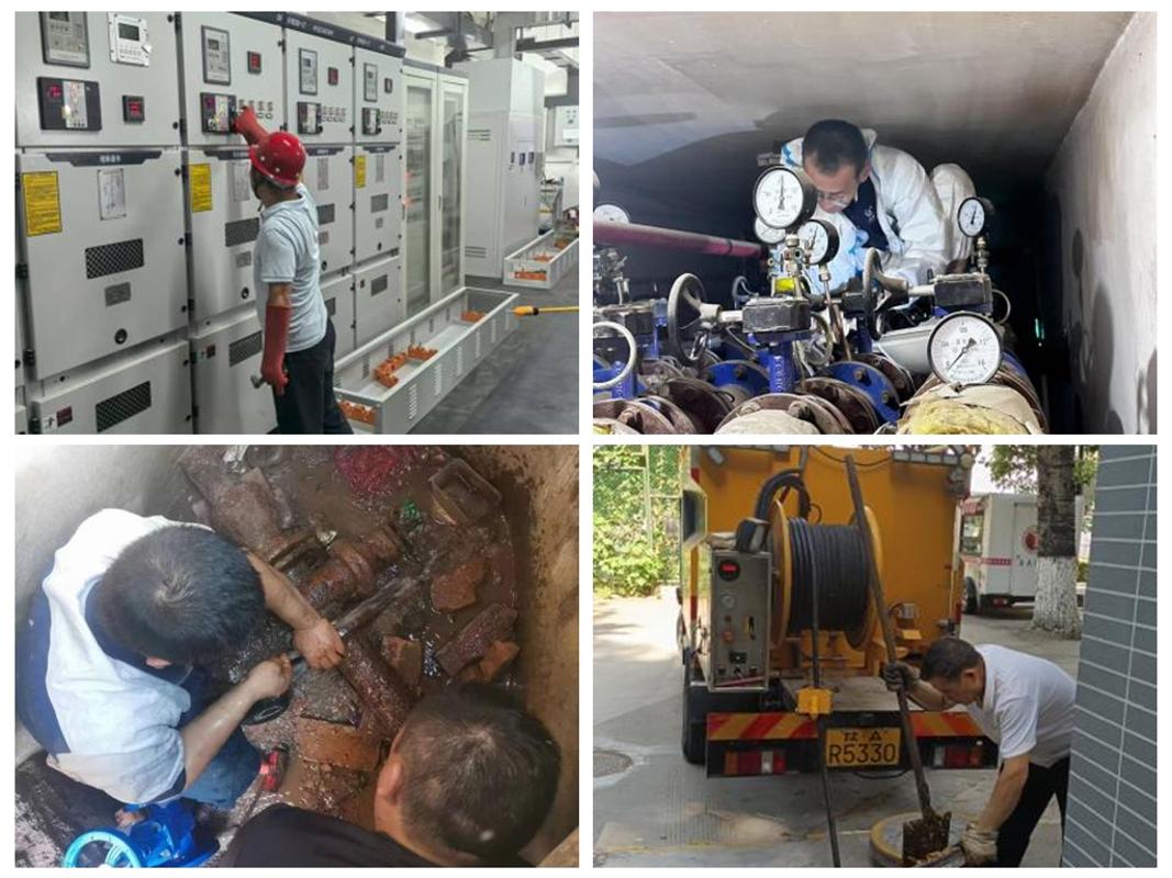 为做好迎峰度夏电力保障工作,能源服务中心提前做好负荷预判、优化供电电网管控,严格落实24小时服务制度,做好夏季高温、极端高温天气条件下的供电电网运行调度和抢修应急处置工作,确保学校供电电网平稳度过关键保电时期。暑假期间,完成康桥苑、东17舍配电室电力扩容工作;在老旧小区改造中,配合施工单位对开挖前水电暖管网进行定位,防止开挖过程中出现问题;针对上一采暖季出现的供暖问题,集中力量维修更换暖气管道,消除隐患;北二楼锅炉房持续高效运转,为暑期开放的游泳馆提供稳定、充足的热水供应。根据夏季水电故障多发的特点,进一步加强8262222报修电话的运行值班,准确派发维修工单,做到随时报修,及时维修。利用暑期对教学区公共教室及公共区域、学生宿舍楼内的电力、照明、给水等设施进行巡查检修;对兴庆校区及家属区室外公共路灯照明设施进行检修、清理下水井,以做好新学期开学准备工作。对学校举办的各种夏令营、新生军训等宿舍,提前安排人员在暑期进行供电工作;为保障学生、居民和周边商业的暑期购电,在售电点安排值班人员;为提高水电暖回收率,做好家属区自交费用户催费及工资扣费工作。
